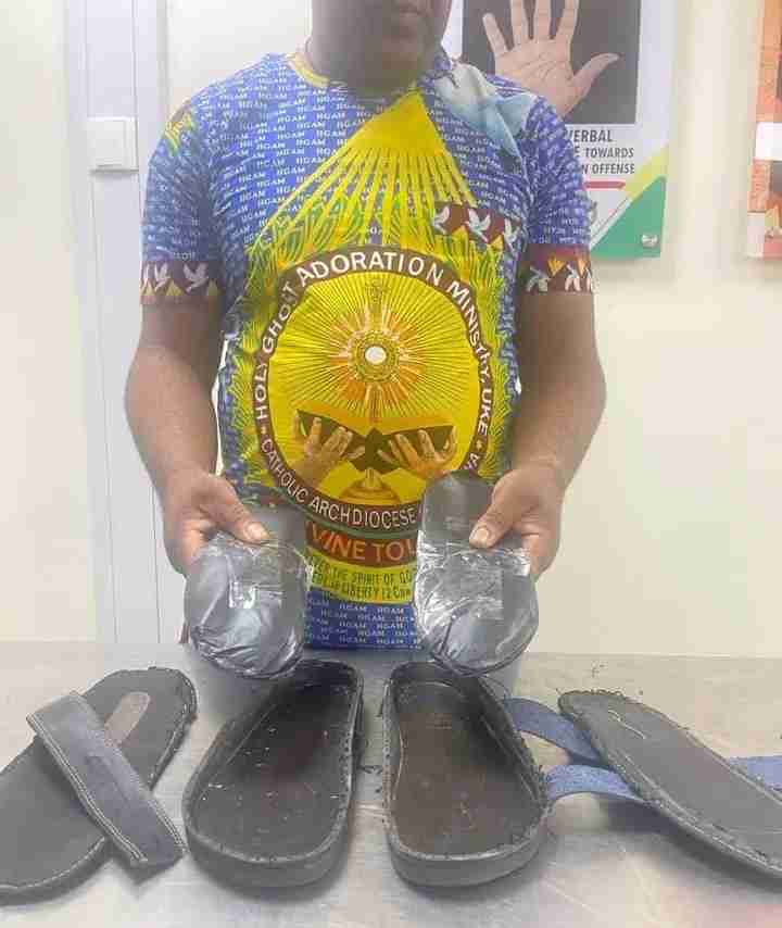 The two parcels of cocaine were concealed in the soles of a pair of black sandals Akajiobi was wearing to board his flight when NDLEA operatives intercepted him on Thursday 25th July 2024.
