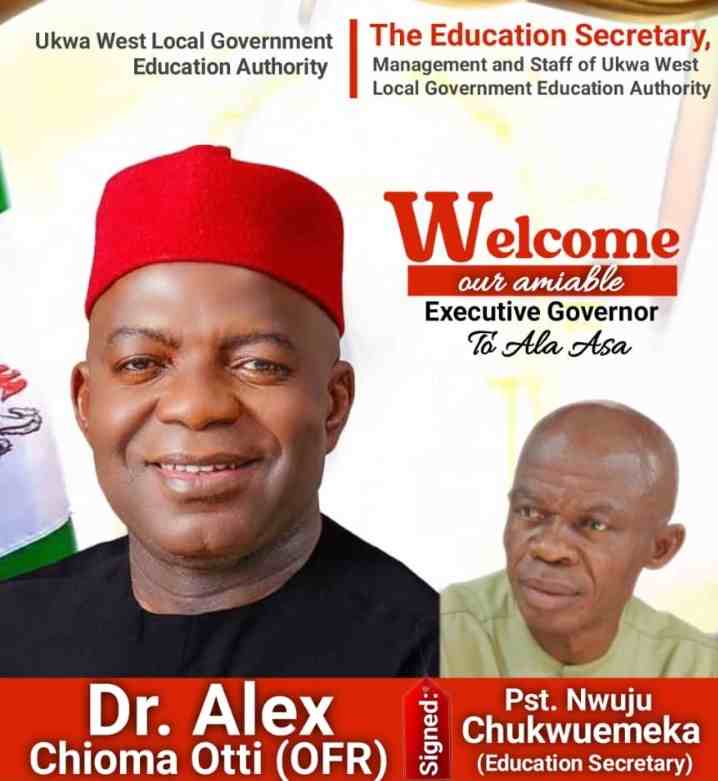 The Ukwa West Education Authority has formally welcomed Abia State Governor, Dr. Alex Chioma Otti, ahead of his scheduled visit to Ukwa West Local Government Area on Friday, August 29, 2025, where he is expected to receive defectors and supporters to the Labour Party, (LP), in a massive rally at the Obehie Central School playground in Ukwa West Local Government Area.