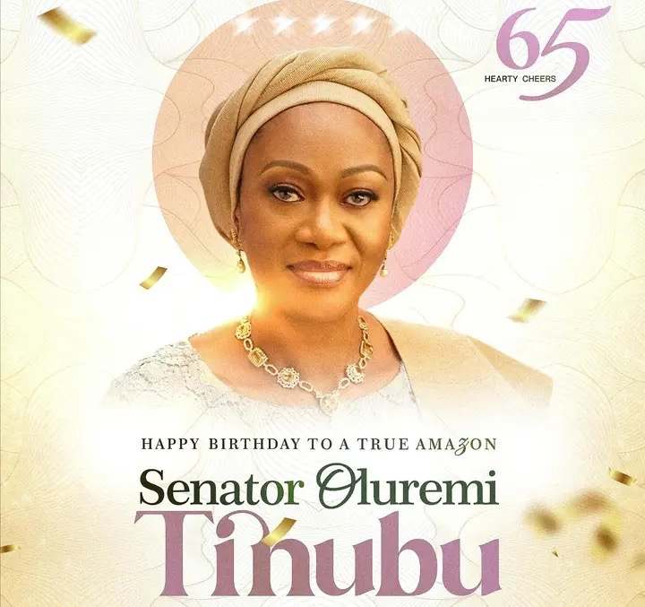I extend my warm felicitations to our amiable First Lady, Her Excellency, Sen. Oluremi Tinubu on her 65th birthday.